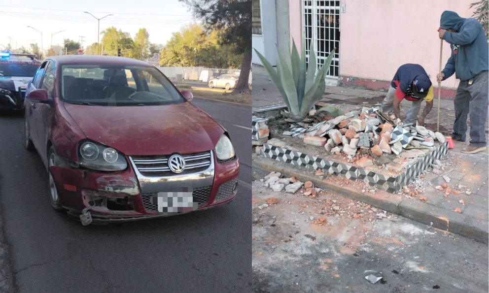 Choque contra jardinera en Avenida Universidad deja daños materiales