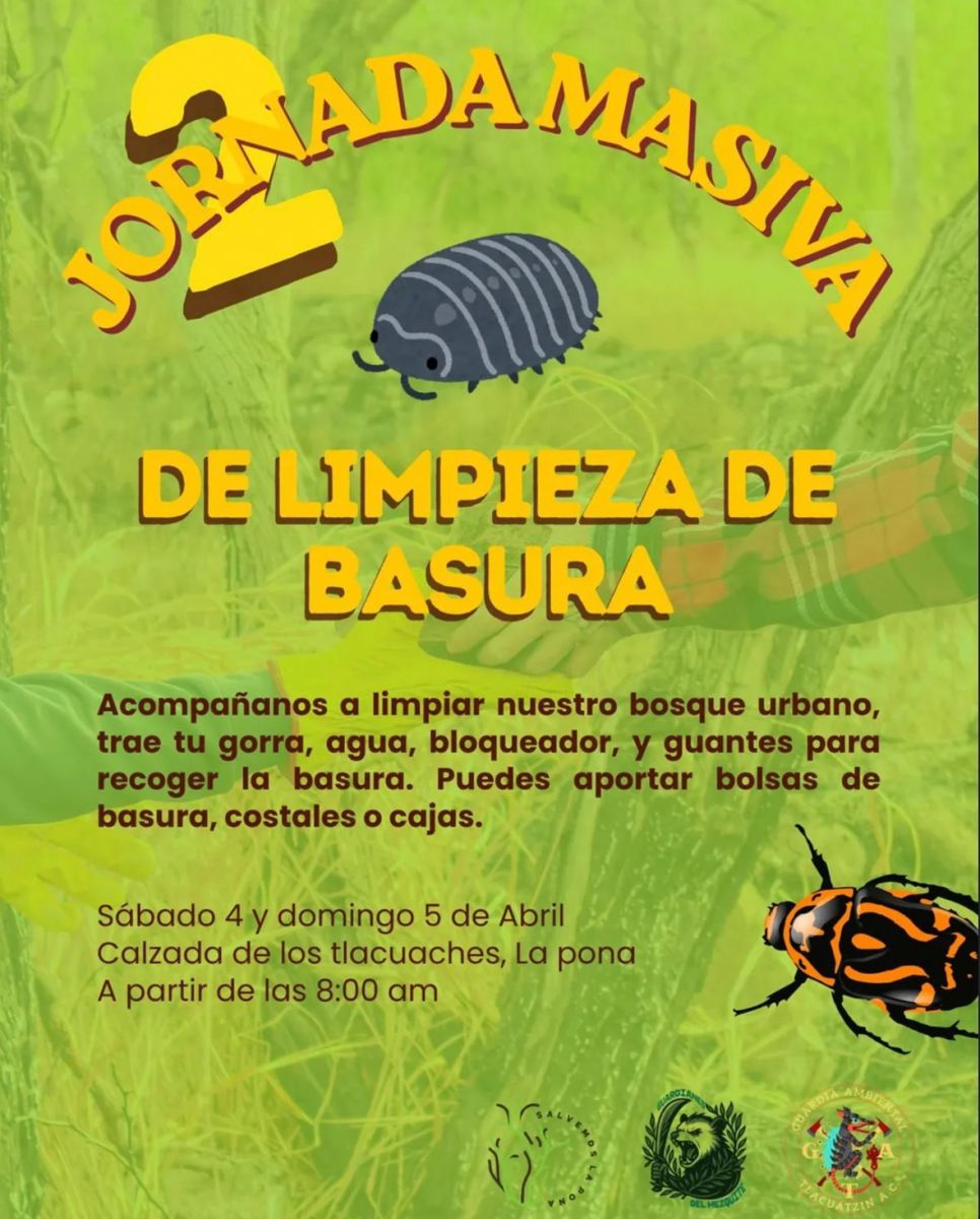 La jornada de limpieza se llevará a cabo de 8:00 a 10:00 horas en la zona de la Calzada de los Tlacuaches