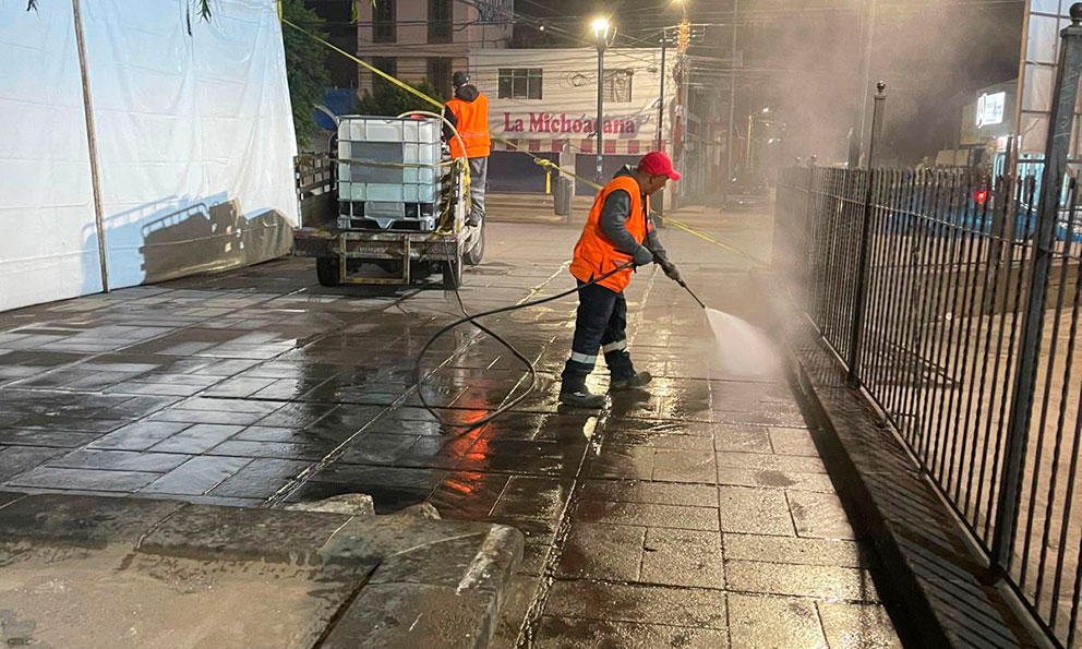 Trabajadores municipales retiraron el grafiti, repararon la fuente y el mobiliario urbano