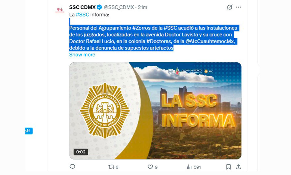 Evacuan juzgados en CDMX por amenaza de bomba