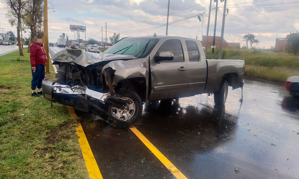 Accidente en El Llano: cofre se levanta y provoca volcadura de camioneta